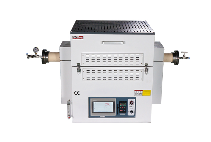 爐管兩端裝有不銹鋼金屬法蘭,配套高溫 PTFE 墊圈,可在真空下進(jìn)行工作, 真空度≤5pa(旋片式真空泵)